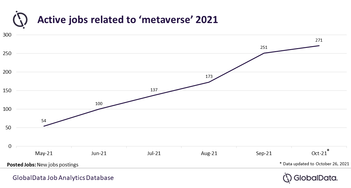 Ajay Thalluri, Business Fundamentals Analyst at GlobalData, says: “Noticeable increase in active jobs since June 2021 indicates growing need for talent but job closures remain relatively low. Companies listing jobs seems to be facing a talent crunch for the trending high-skilled jobs. In September 2021, there were 250 active jobs around metaverse but only 48 job closures.”